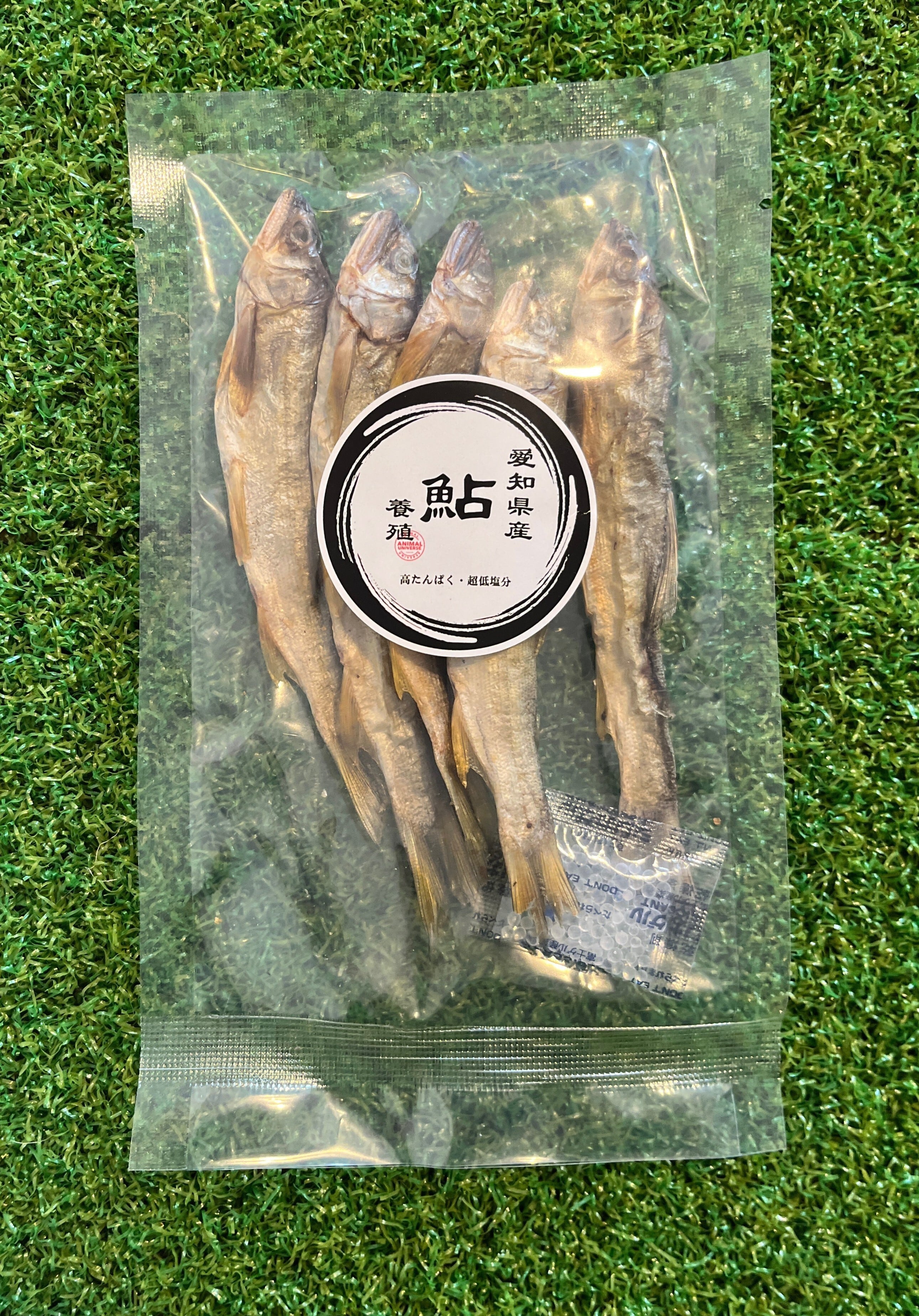 愛知の名の由来とされる伝統食材「鮎」 。人間が食べるものと同じ鮮度のものを、完全無添加で低温乾燥させました 。安全性と栄養を極限まで追求した、究極のヒューマングレード・トリーツです。